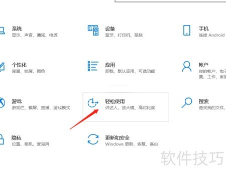 2、 进入轻松使用选项,打开对话框。