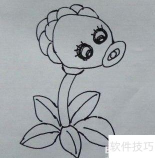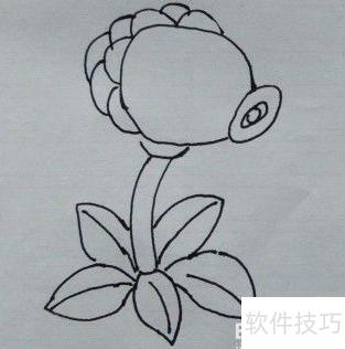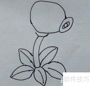 1、 用几片叶子和枝条绘制成卡通音箱的支撑底座。