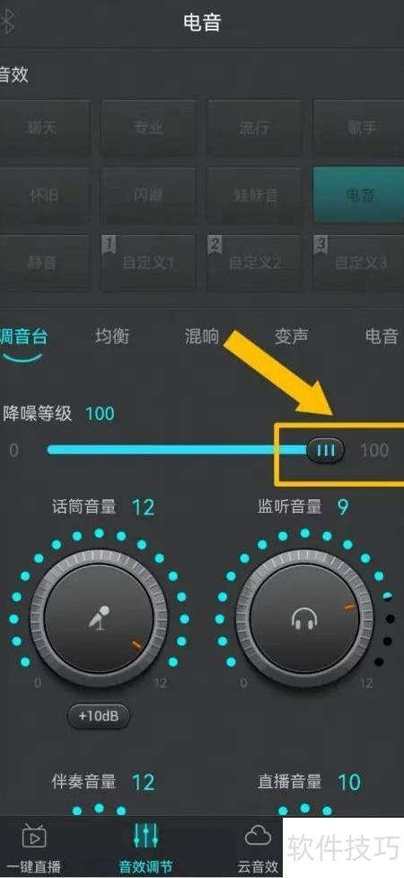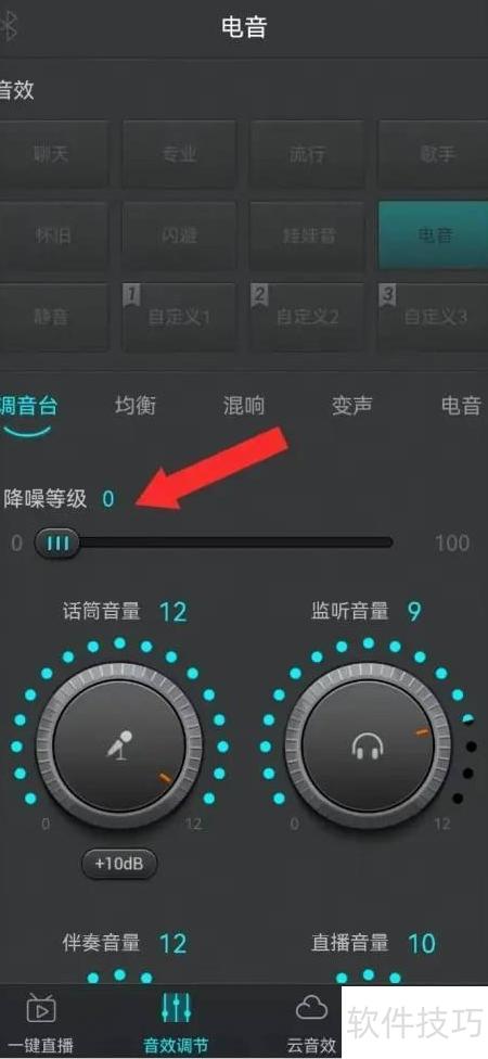 3、 把降噪调节按钮调至档位,即可启动系统自动屏蔽背景噪音功能。