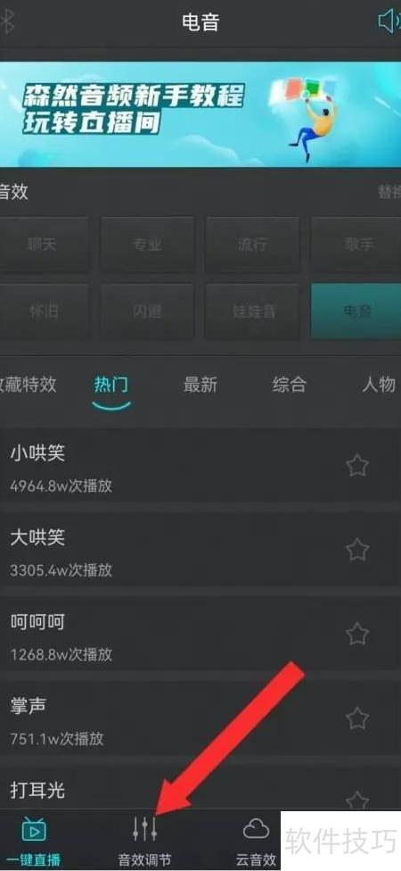 1、 下滑打开底部栏,点击音效调节图标即可。