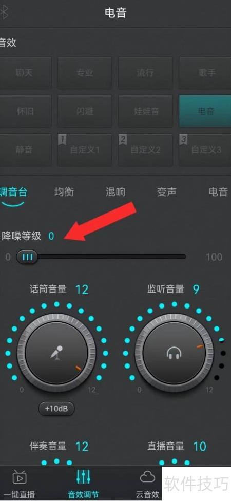 2、 进入电音界面,点击降噪等级设置区域。