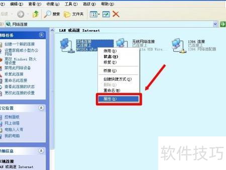 7、 卸载NetWare服务:依次点击开始、控制面板、网络连接进行操作。