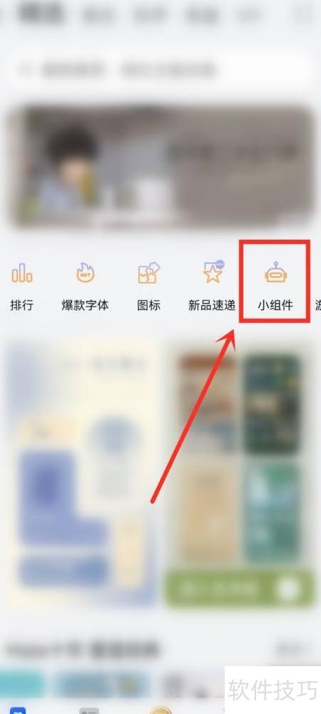 1、 进入华为主题首页,选择顶部的小组件选项。