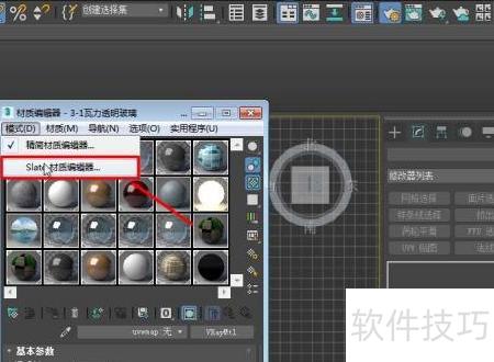 3、 打开精简材质编辑器后,点击左上角的模式选项,在下拉列表中选择Slate材质编辑器,即可完成切换。操作简单直观,方便用户在不同编辑界面间快速转换,提升编辑效率与使用体验。