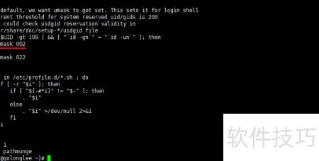 4、 这里的umask表示默认权限掩码,即新创建文件的权限中,后两组用户和组均缺少写权限,也就是没有数字2对应的写入权限。