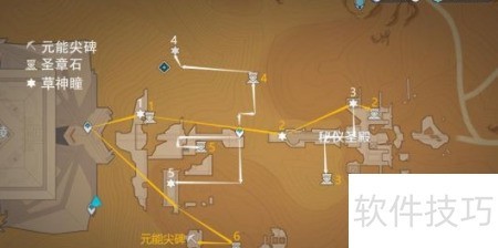 3、 在图中沙漠石墙下找到圣章石雷霆即可达成目标。
