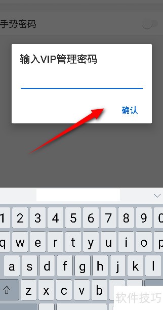 6、 进入新界面后,输入VIP管理密码并确认,即可成功开启手势密码功能。