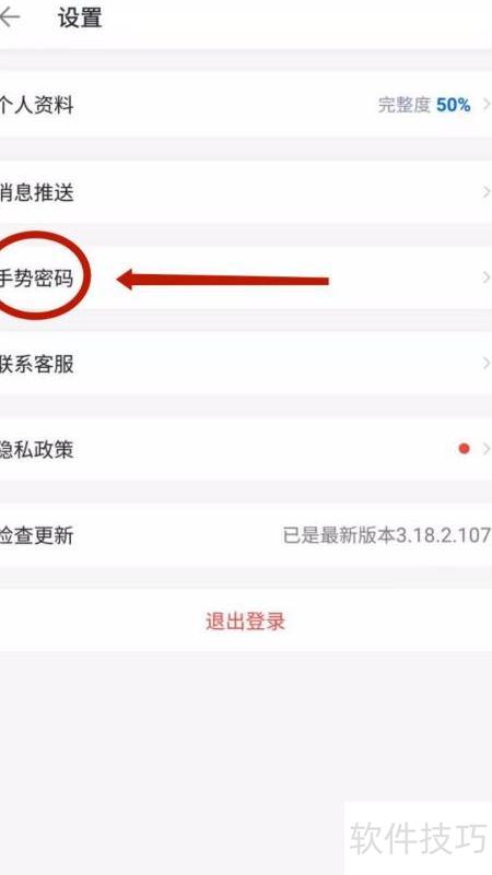 4、 进入设置页,选择手势密码功能,见图示操作。