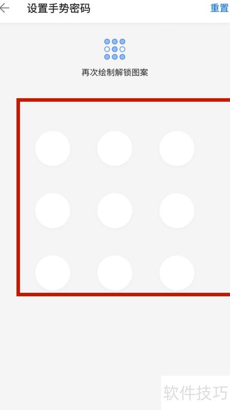 8、 再次绘制手势密码,完成操作,详见示意图。