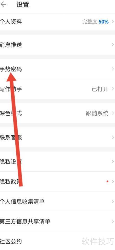 5、 进入手势密码功能,开启按钮后进入设置页面,按提示绘制并确认手势即可完成设置。