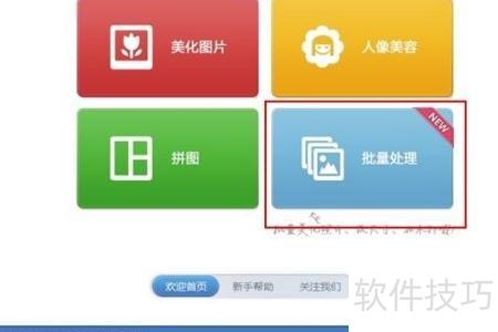1、 美图秀秀是广为人知的图片处理工具,常预装于手机和平板中。本文介绍其在电脑端的批量图片处理功能。未安装用户可前往官网下载并完成安装。启动软件后,界面会显示批量处理选项,点击进入。部分版本可能提示需额外安装该功能模块,按提示操作即可。安装完成后,系统将自动切换至批处理操作界面,方便高效地进行多图编辑。