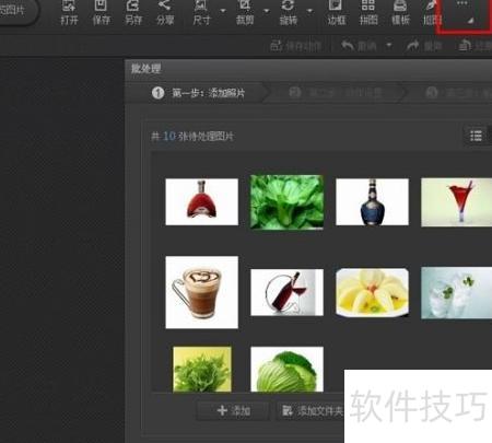33、 为便于操作,可点击工具栏右侧的小三角按钮,其隐藏了批处理功能,点击后将弹出批处理界面,清晰显示三个操作步骤,方便用户快速执行。