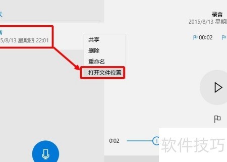 8、 录制的声音文件保存在电脑的哪个位置?只需在录音文件上单击右键,选择打开文件所在位置,即可查看其具体存储路径。