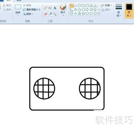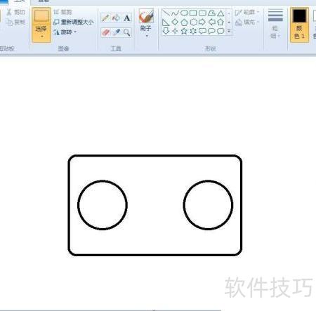 3、 在矩形内相应位置绘制两个大小相同的圆。