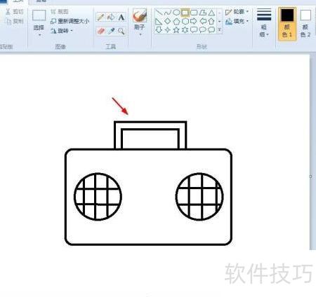 5、 在矩形顶部绘制所示的提手部分。