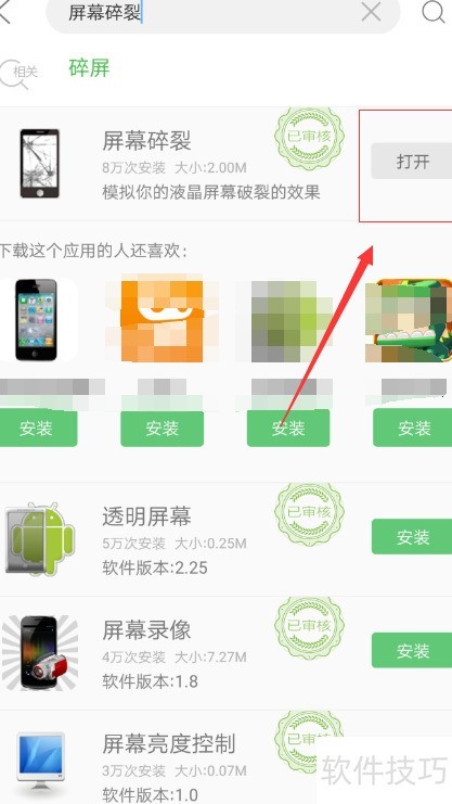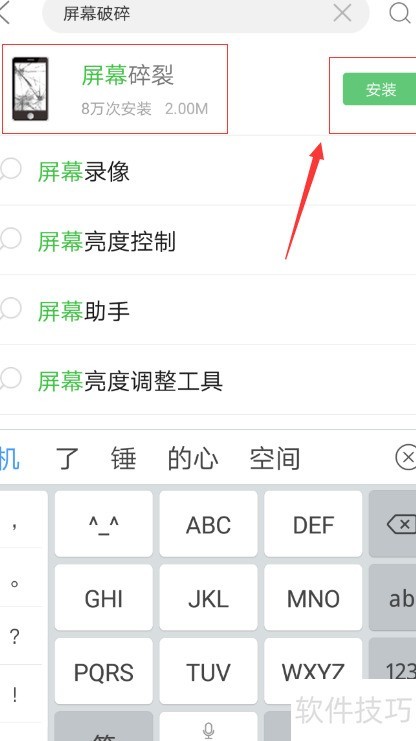 3、 输入屏幕破碎后,点击安装屏幕碎裂效果。