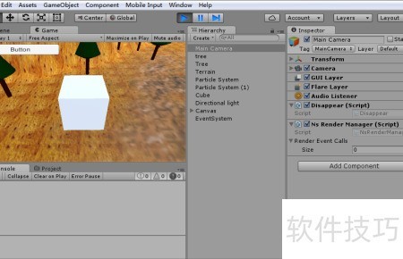 20、 可将Disappear脚本直接挂载在相机或不会被销毁的物体上,确保其持续运行。