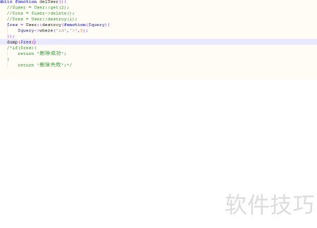 2、 通过调用模型类的destroy()方法同样可完成删除操作,结果显示删除成功。
