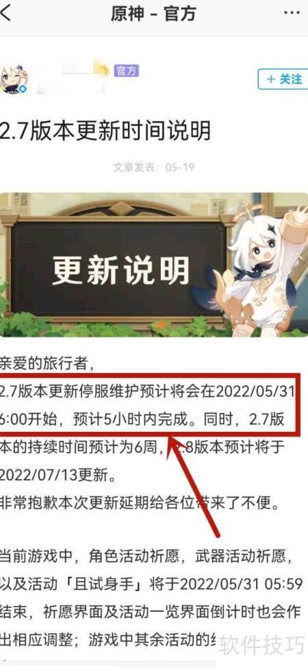 3、 查看原神2.7版本更新时间详情