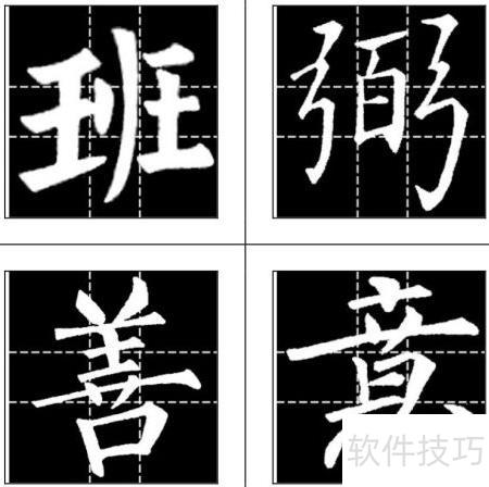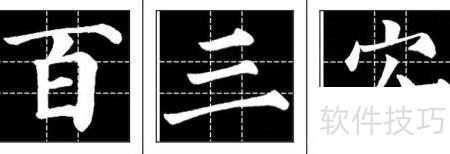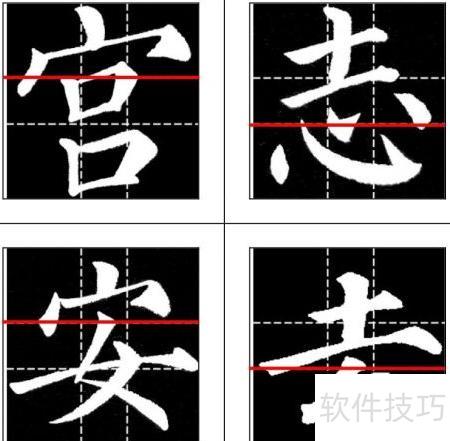 78、 左右与上下结构比例是汉字书写的基础。运用启功黄金格,可通过定位线精准安排部件位置,使左右紧凑、上下对齐,达到结构匀称、美观协调的书写效果。