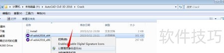 17、 进入AutoCAD Civil 3D 2016Crack文件夹,右键点击注册机程序xf-adsk2016_x64,然后选择以管理员权限运行该工具。