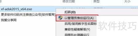 19、 回到最初的安装包目录,进入AutoCAD C3D 2015 64位注册机文件夹,找到名为xf-adsk2015_x64.exe的程序,右键点击该文件,选择以管理员身份运行来启动注册机。