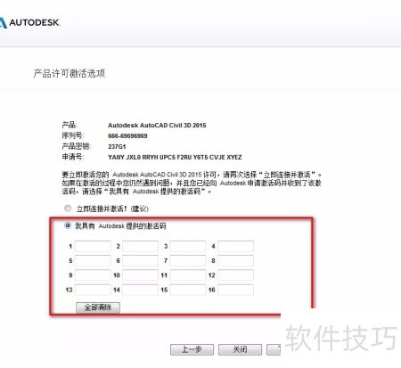 21、 将注册机Activation栏生成的激活码复制,粘贴至安装界面首个输入框,系统会自动填充,随后点击下一步继续操作。