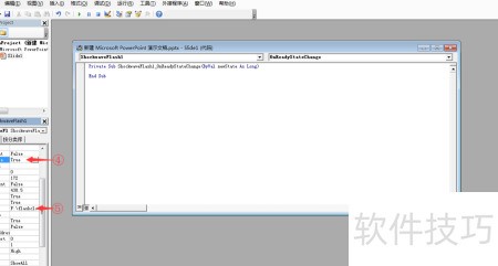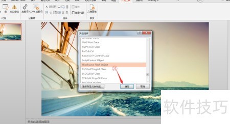 3、 双击控件进入编辑模式,通过④和⑤设置相关属性,在⑤中填入文件完整路径,例如:F:flashclockflashtime-0001.swf。