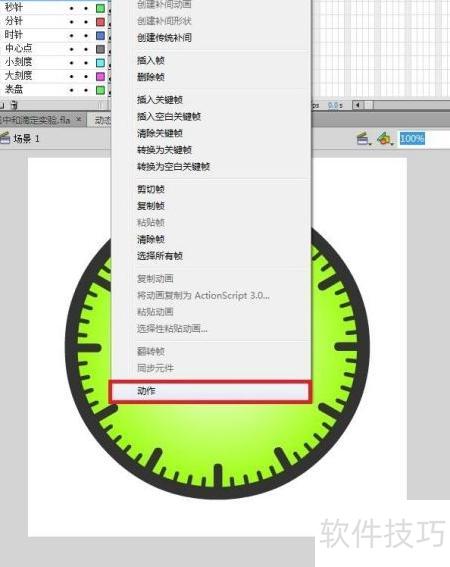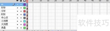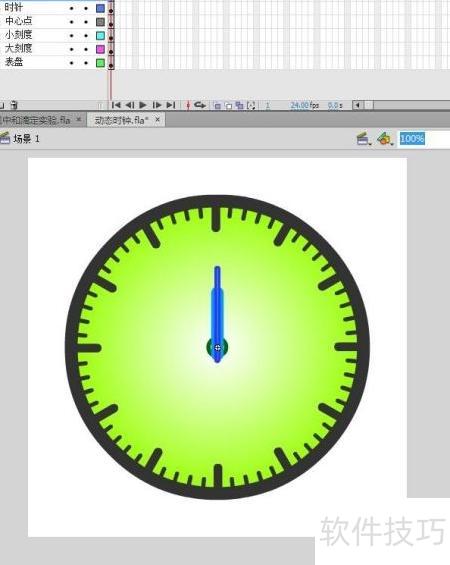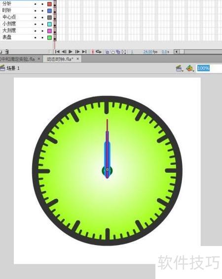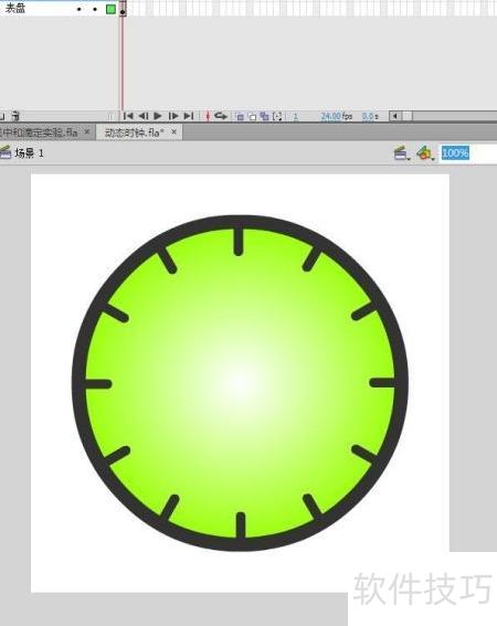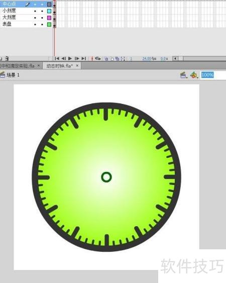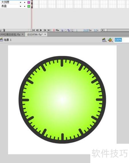 3、 将图层1重命名为表盘,并在首帧绘制表盘图案。