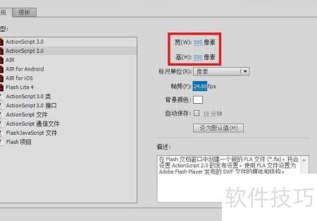 2、 创建一个500×500像素的文档,帧频设为24.00fps,背景颜色可自选,此处以白色为例。