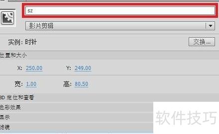 10、 把画好的时针在属性面板中命名为sz,此步骤非常关键。