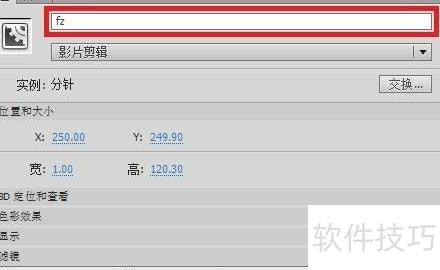 12、 将绘制完成的分针在属性面板中命名为fz,此步骤尤为关键。