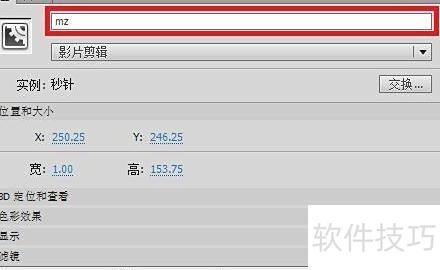 14、 把画好的秒针在属性面板中命名为mz,此步骤十分关键。