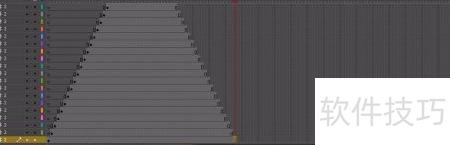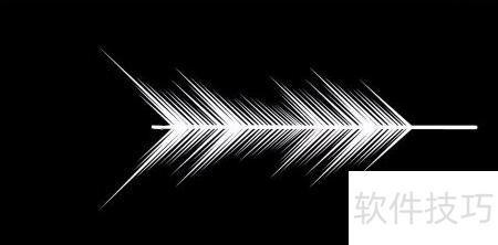 3、 创建图形元件2,使用直线工具在舞台绘制一条白色、粗细为4的线段,随后将其转为填充。新建图层二,将元件1拖入舞台,沿线段两侧不规则分布,长短交错排列,最终效果如示意图所示。