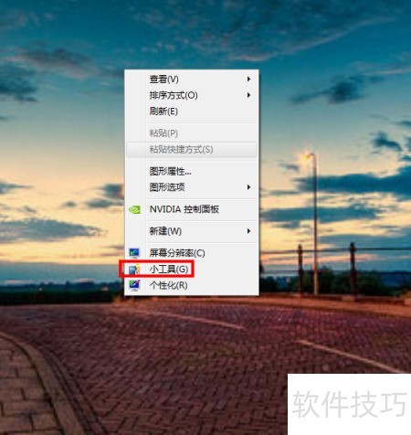 1、 在电脑桌面空白处右击,选择小工具即可打开。