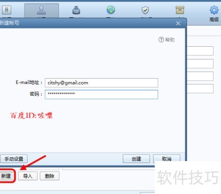 4、 在Foxmail中添加Gmail账户,点击右上角的工具进入账号管理进行设置。