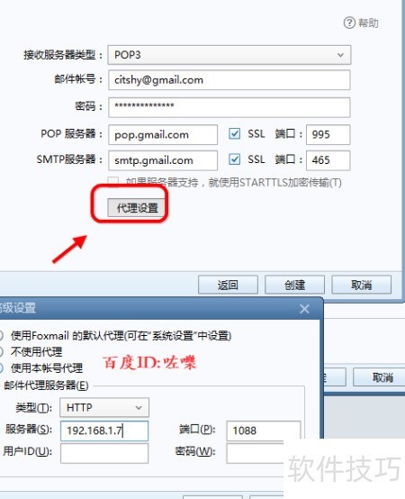 9、 若无法连接Gmail,可尝试为Foxmail单独设置网络代理以解决问题。