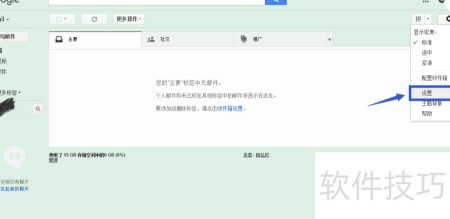 2、 点击主界面右上方齿轮图标,从下拉菜单中选择设置选项。