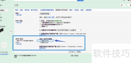 3、 进入设置页面后,点击顶部的转发和POP/IMAP选项,进入并开启IMAP功能设置。