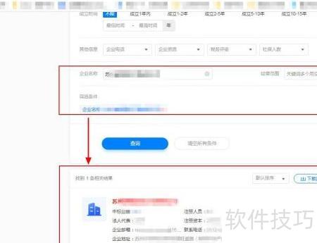 1、 进入查企业页面,输入企业名称后点击查询,选择结果中的企业名称即可查看详细信息。