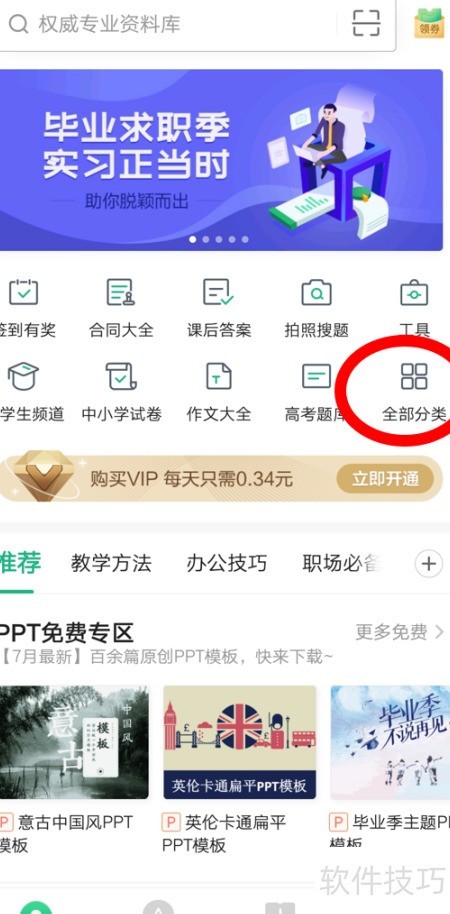 2、 点击图中红圈标注的全部分类即可。