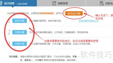 9、 完成编辑后,若需修改,请在左侧红圈标注处进行调整;若内容无误,请直接点击右上角发布此问卷即可。