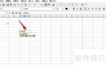 9、 在C6单元格输入=Acot(可显示该函数的使用方法。