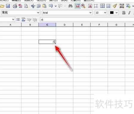 3、 在单元格中输入数值类型数据,例如在C4单元格填入-6。