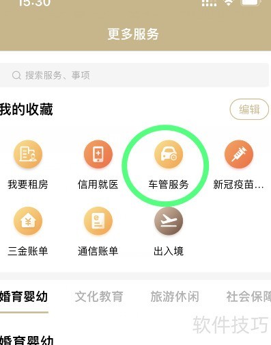 2、 点击车管服务进入办理