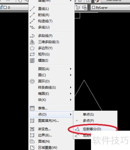12、 选择绘图菜单中的点并进行等分操作