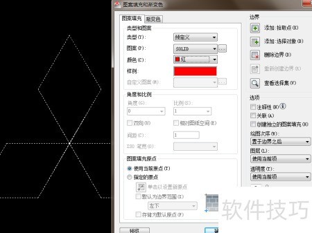 29、 点击添加拾取点,在三个菱形中间的空白区域各点一次,然后按回车键确认。