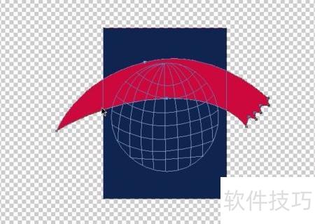 1、 先用矢量矩形绘制底部方框,接着用钢笔工具勾勒中间的圆弧,最后通过线条组合描绘出地球轮廓,将各个部分的路径依次连接完成整体标志的绘制。