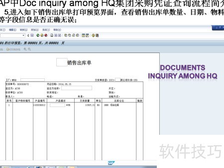 5、 进入销售出库单打印预览界面,核对数量、日期、物料号等信息是否准确无误。