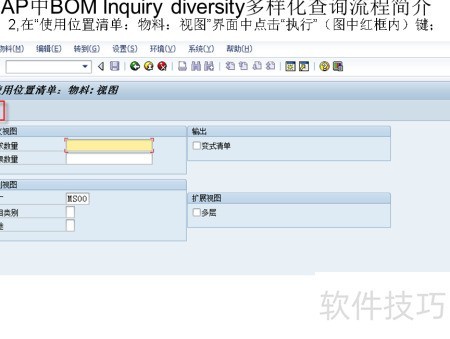 2、 在使用位置清单:物料:视图界面,点击执行按钮(位于红框内)。